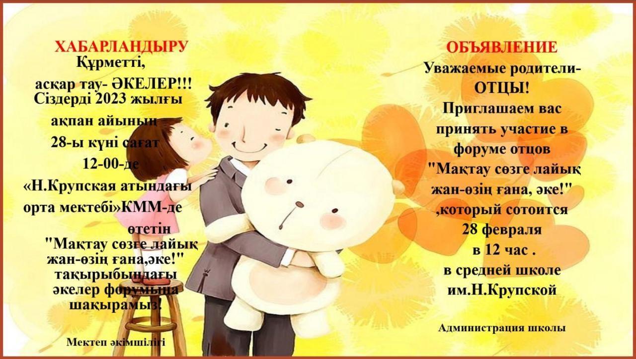 Хабарландыру » « Н.Крупская атындағы орта мектебі» КММ
