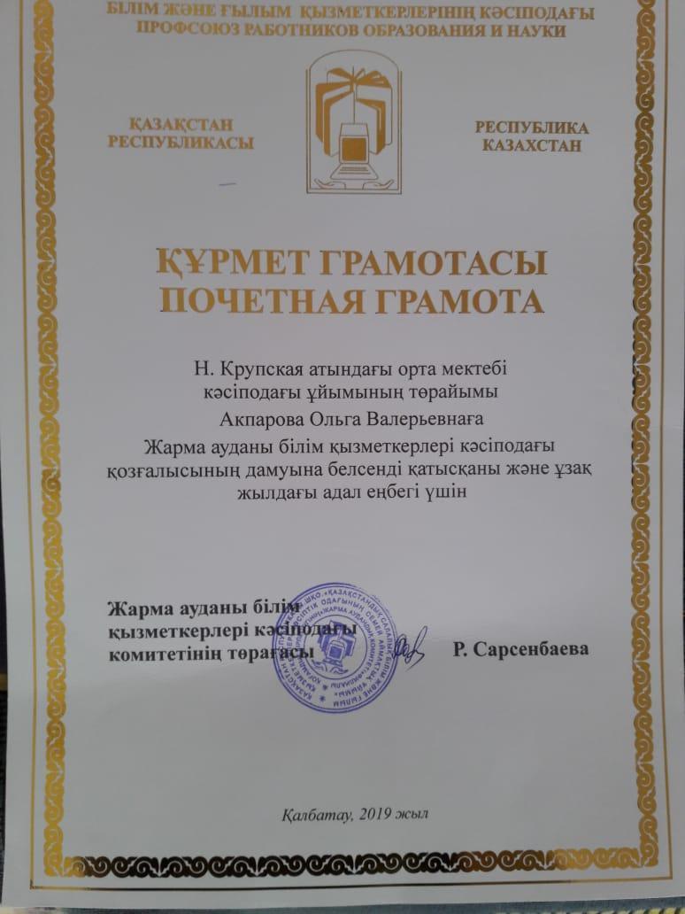 Достижения педагогов » « Н.Крупская атындағы орта мектебі» КММ